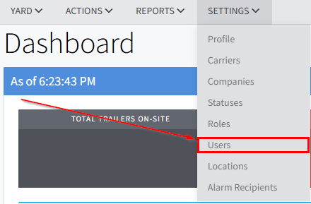 - Click "SETTINGS" in the top bar, then click "Users"