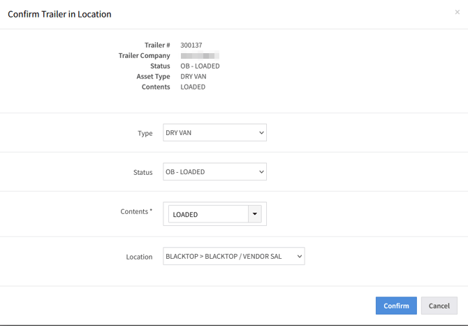 Clicking the entry of any asset will open a confirmation window. The system will display the asset and its corresponding details registered at that location or a checkbox indicating the location is believed to be vacant.
