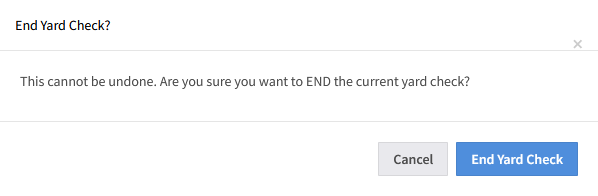 Once the check is finished, click the red "End Yard Check" button (its location will be the same as the Start button). The visibility of the "End Yard Check" button is the same as the "Start Yard Check", meaning only users who were granted access to the functionality can see it.
